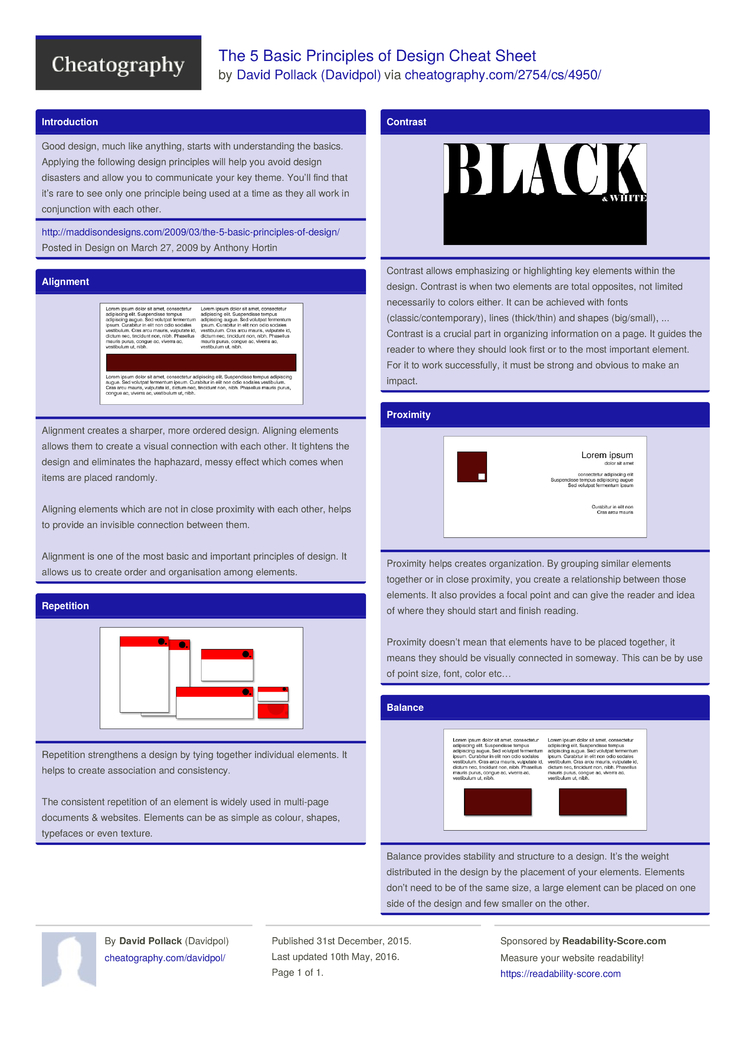 The 5 Basic Principles of Design Cheat Sheet by Davidpol