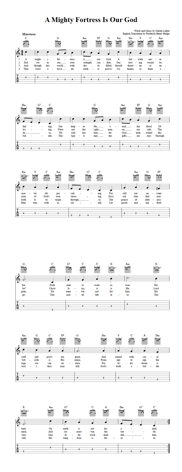 A Mighty Fortress Is Our God Guitar Tab by Martin Luther