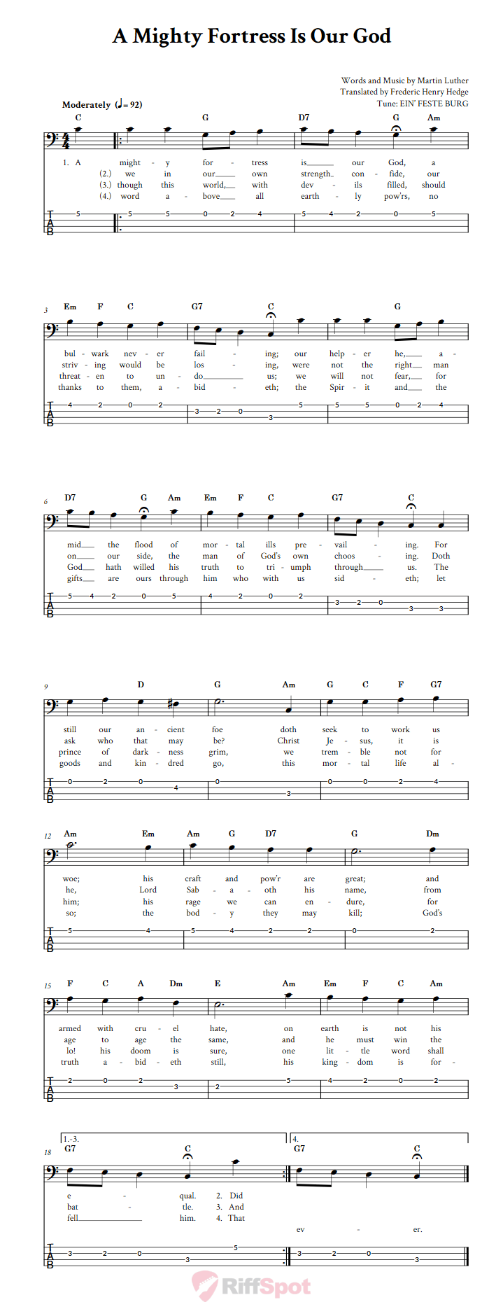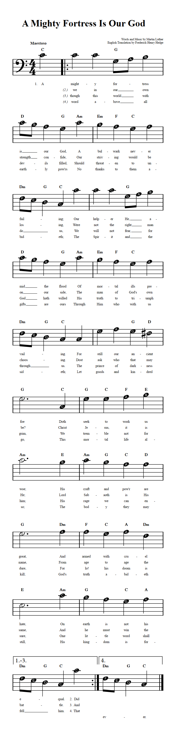A Mighty Fortress Is Our God: Chords, Lyrics, and Bass