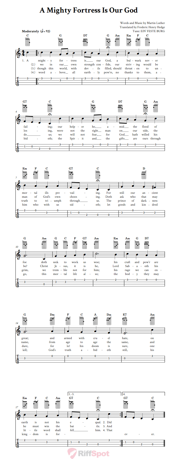 A Mighty Fortress Is Our God by Martin Luther - Ukulele