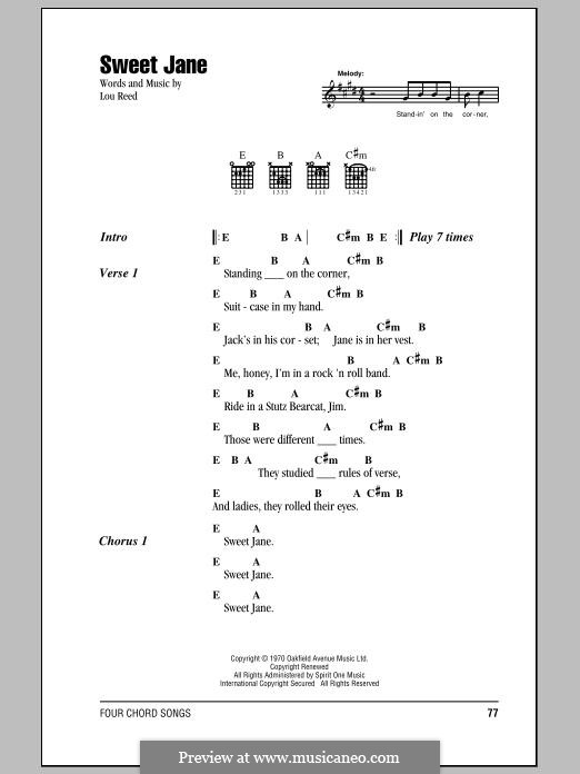 Sweet Jane by L. Reed - sheet music on MusicaNeo