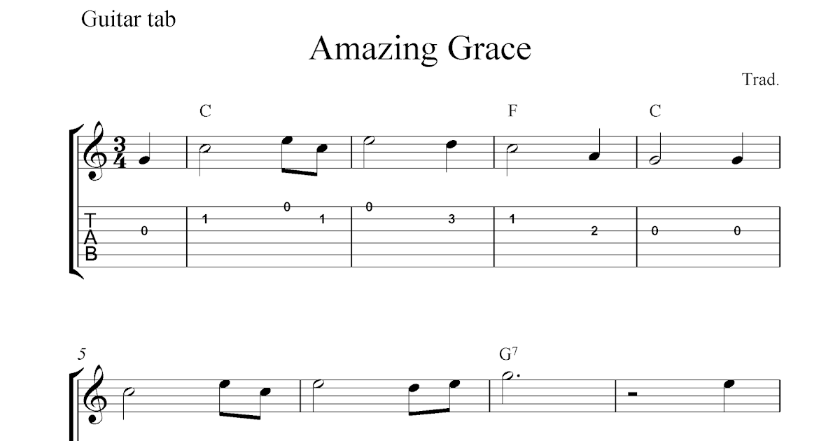 Easy Classical Guitar Sheet Music (Tabs), Amazing Grace