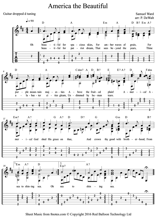 Guitar Tab and sheet music for America The Beautiful(1)