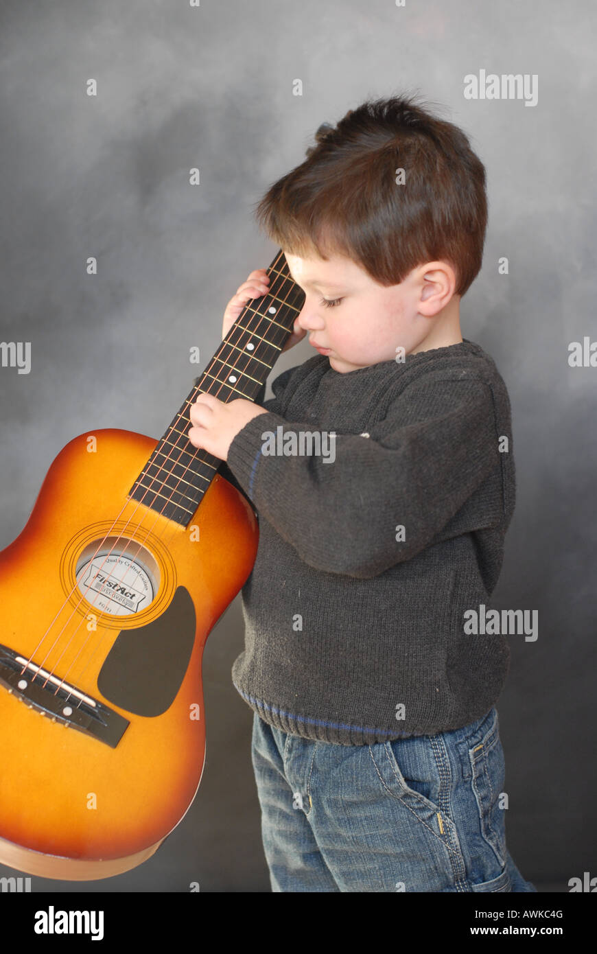 Little Boy Playing Guitar Stock Photos - Royalty Free Pictures