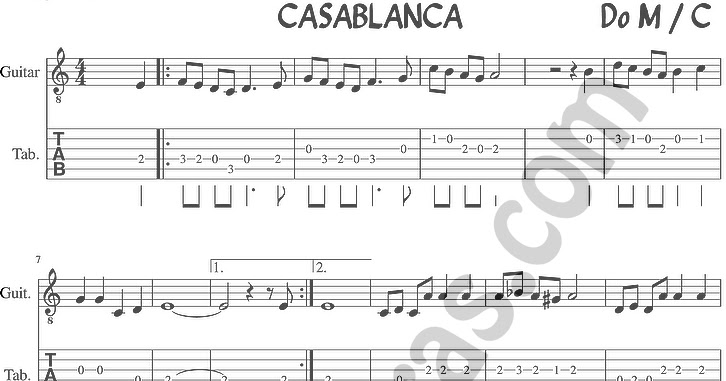 Guitar Tab and sheet music for As Time Goes By