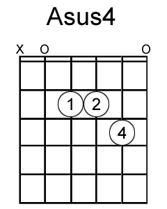 A sus4 Guitar Chord Chart and Fingering (A Suspended 4