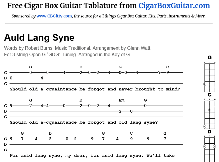 Auld Lang Syne - 3-string Open G GDG - Cigar Box Guitar
