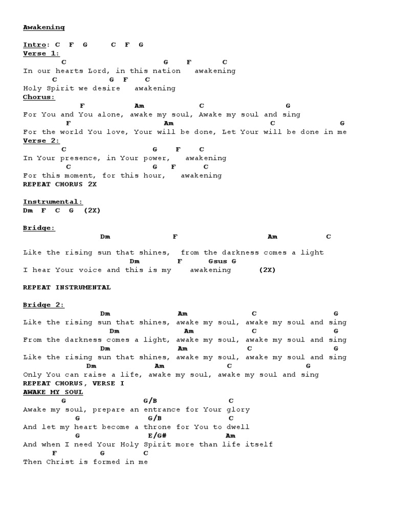 Awake My Soul Lead Sheet, Lyrics, & Chords | United