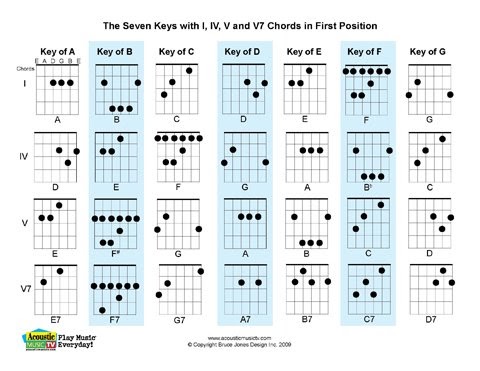 Acoustic Music TV: Guitar Fingering Chord Charts for I, IV