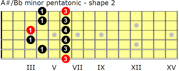 A-sharp/B-flat minor pentatonic scales for guitar