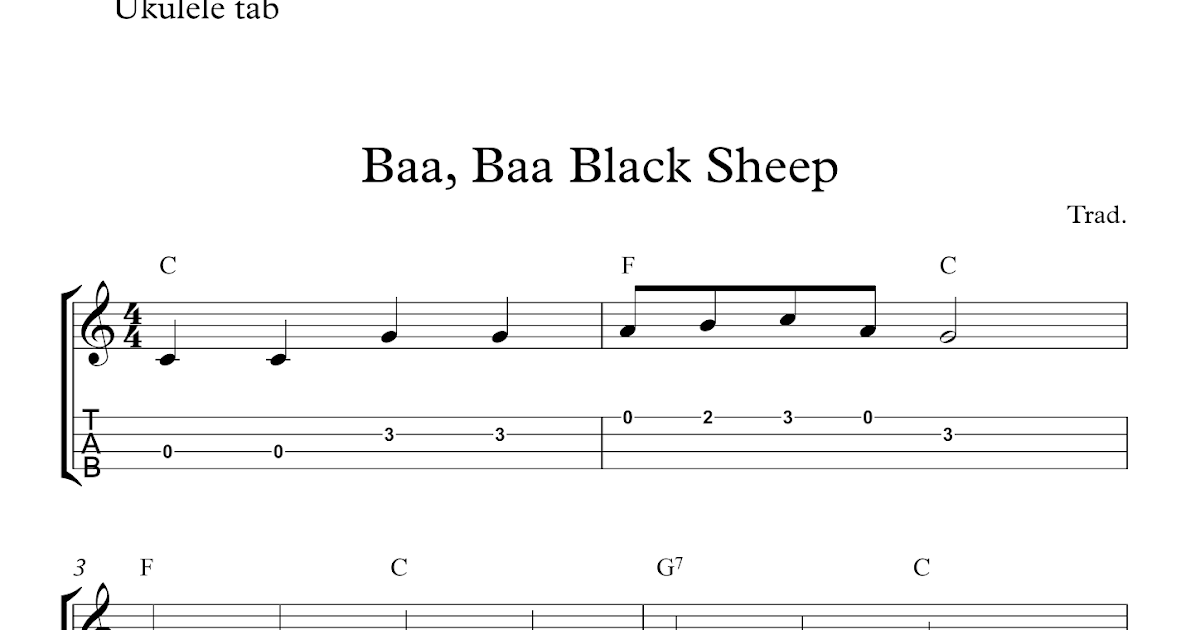 Baa, Baa Black Sheep | Free easy ukulele tab sheet music