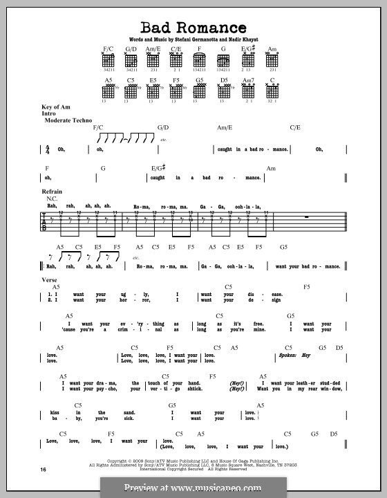 TalkingChord.com: Lady Gaga - Bad Romance (Chords)