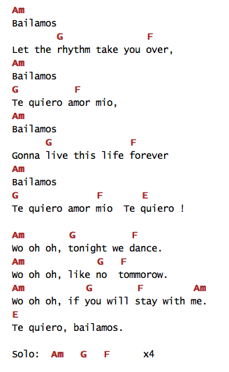 Guitar Chords: Bailamos Guitar chords Enrique Iglesias