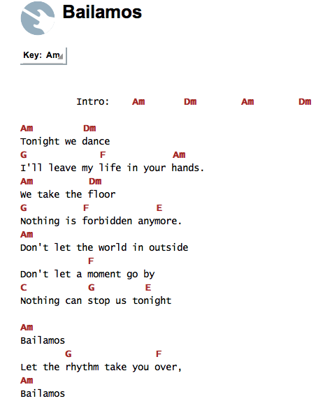 Bailamos Guitar chords Enrique Iglesias | acousticchords