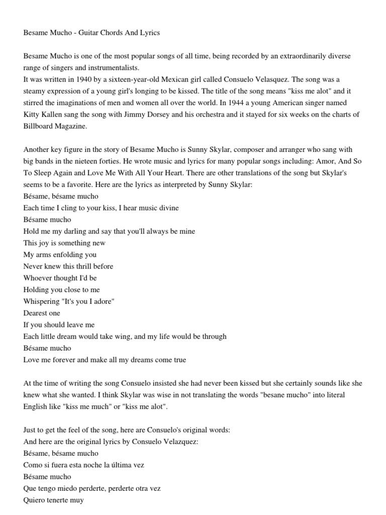 Besame Mucho - Guitar Chords and Lyrics | Pop Culture