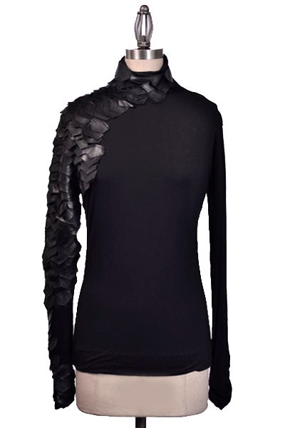 Celebrity Black Asymmetrical Leather Scale Sleeve