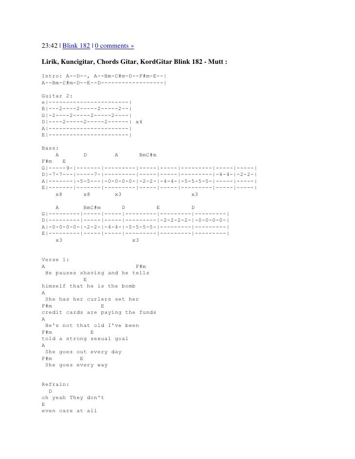 Blink 182 Dammit Guitar Tab : Free Blink 182 Guitar Tabs