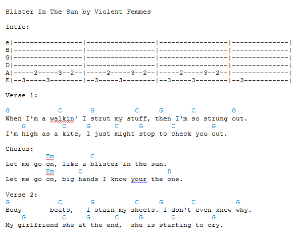 The Guitar Chords to "Blister In The Sun" by the Violent