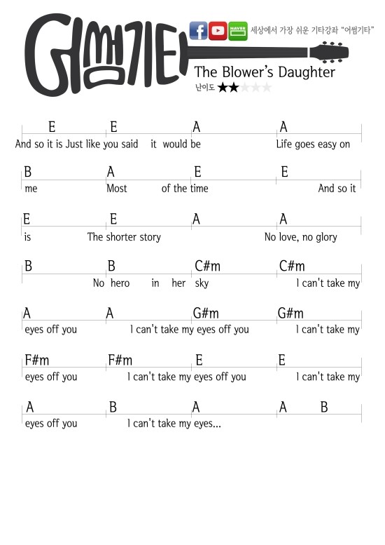 [어썸기타] The Blower's Daughter - Damien Rice 악보, 코드 기타강좌 난이도