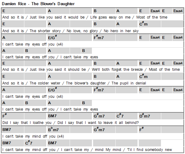 Damien Rice - The Blower's Daughter (기타 코드 악보) : 네이버 블로그