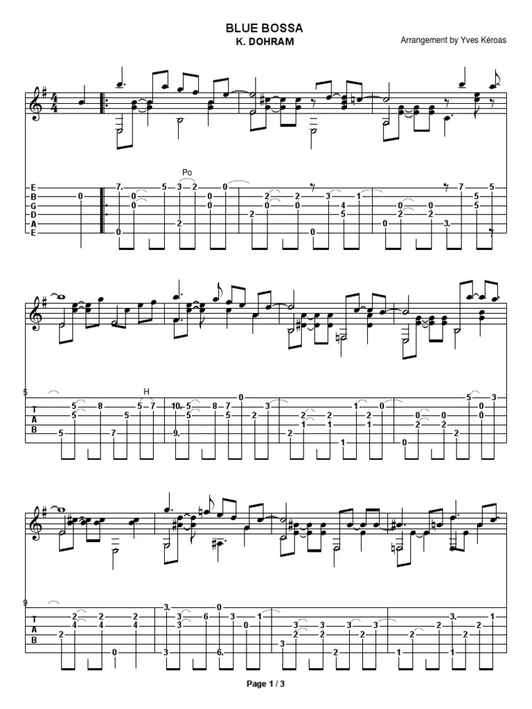 BLUE BOSSA: Fingerstyle Guitar Tab - GuitarNick.com