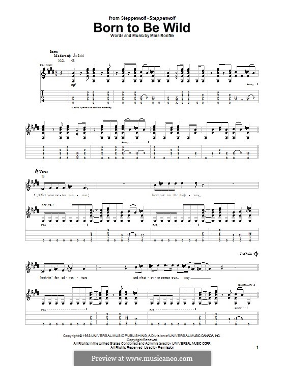 Steppenwolf "Born To Be Wild" Guitar Tab - Download & Print