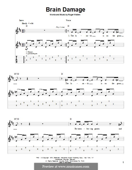 Pink Floyd "Brain Damage" Guitar Tab in D Major - Download