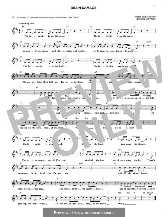 Brain Damage (Pink Floyd) by R. Waters - sheet music on