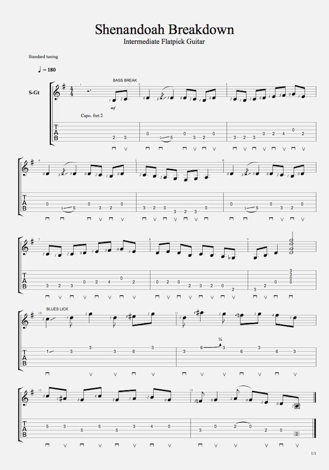 Shenandoah Breakdown Bluegrass Guitar Lesson Tab & Audio
