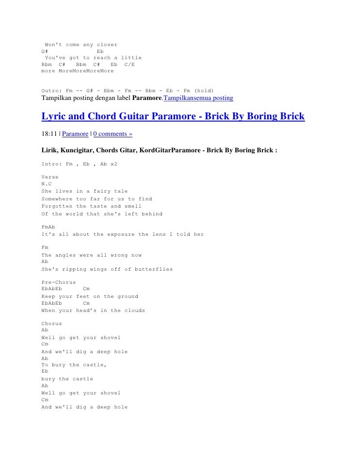 Brick By Boring Brick--Paramore (Lyrics) Chords - Chordify