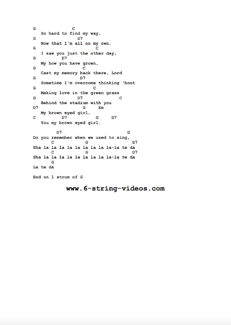 Brown Eyed Girl by Van Morrison - Guitar Chords/Lyrics