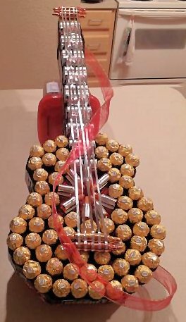 This is a guitar made of Ferrero Rocher candy and