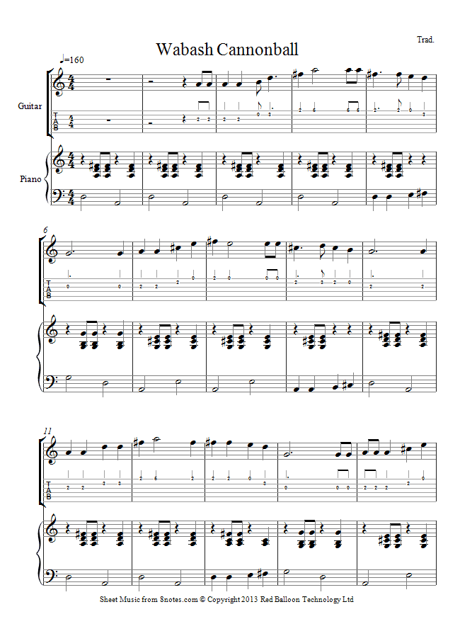 Wabash Cannonball sheet music for Guitar Duet - 8notes.com