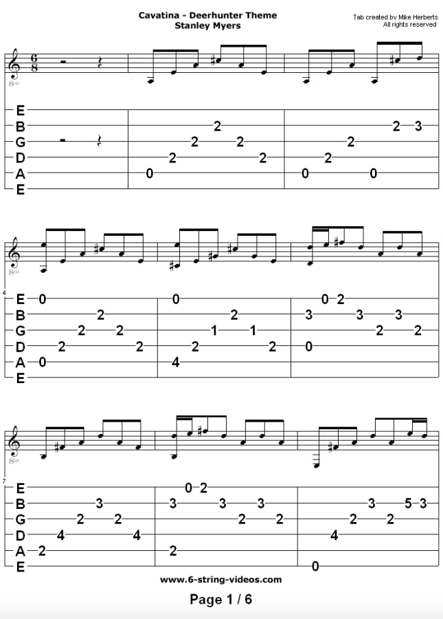 Cavatina tabs by Stanley Myers Deer Hunter Theme Guitar
