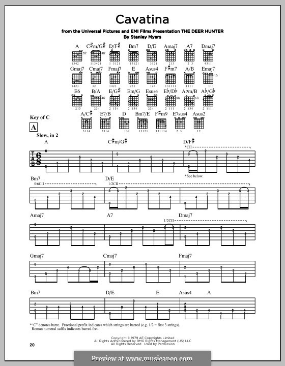 Stanley Myers Cavatina Chords, Sheet Music Notes