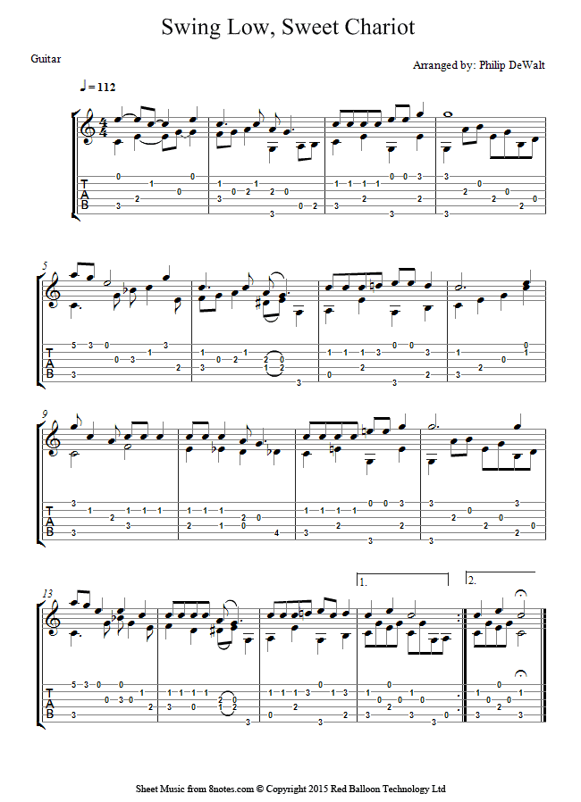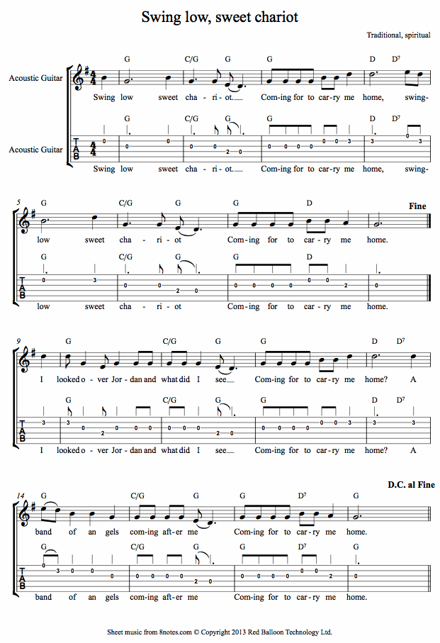 Guitar Tab and sheet music for Swing Low, Sweet Chariot