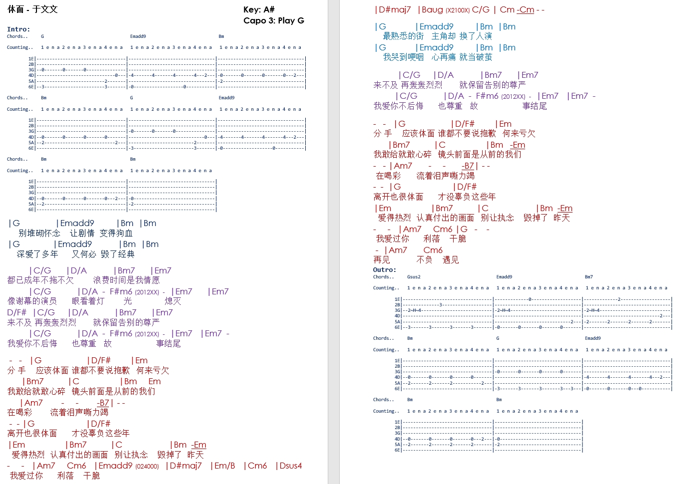 TalkingChord.com: 于文文 - 体面 (吉他谱 Chords + Cover)