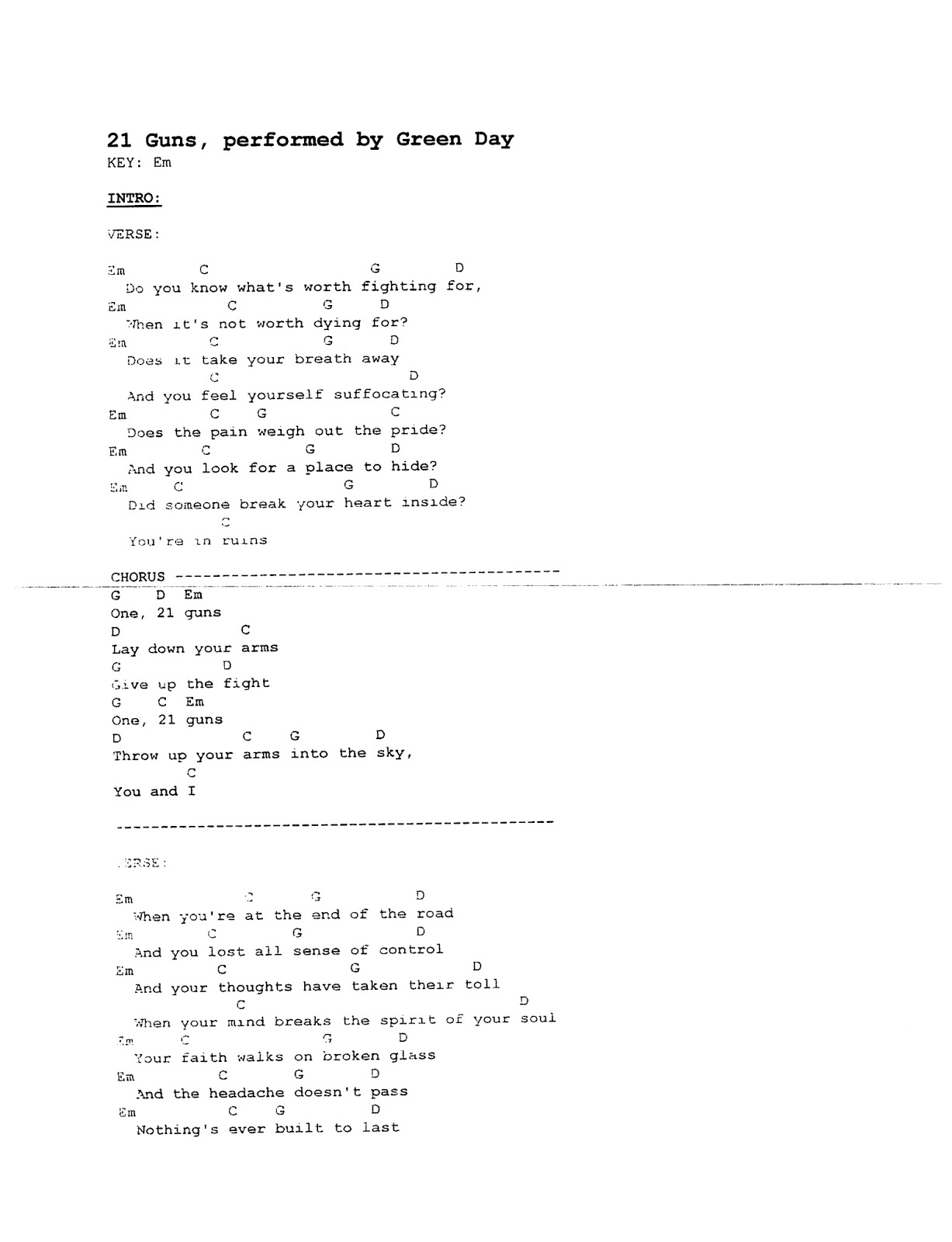 Greenday 21 guns guitar chords lyrics