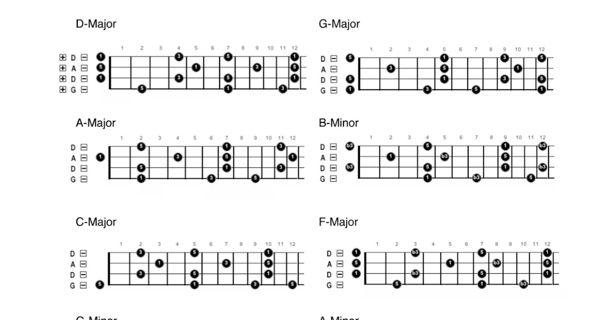 Irish Bouzouki: Find Chord shapes for different chords on GDAD