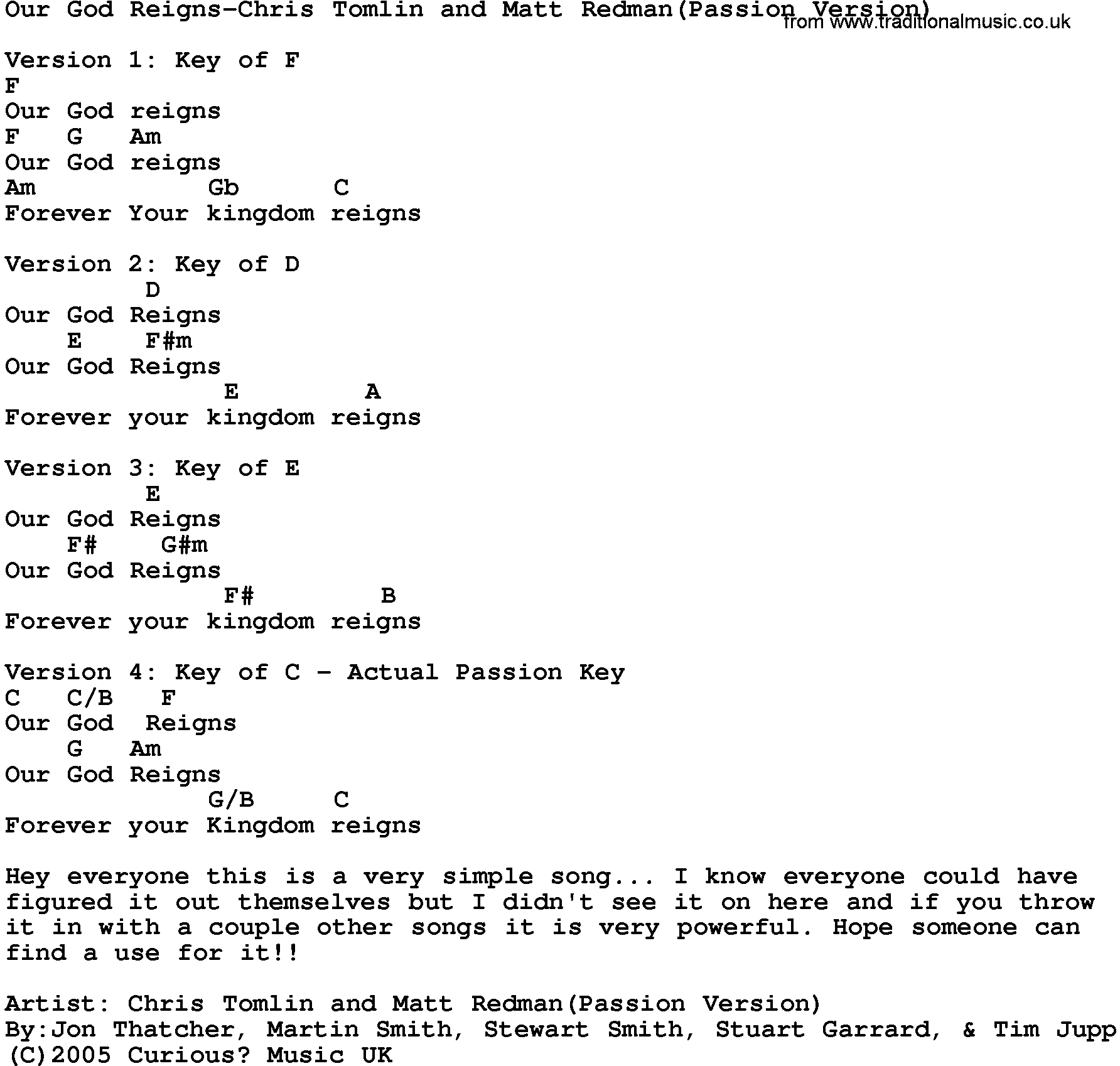 Our God Lyrics and Chords by Chris Tomlin – IFGF Atlanta