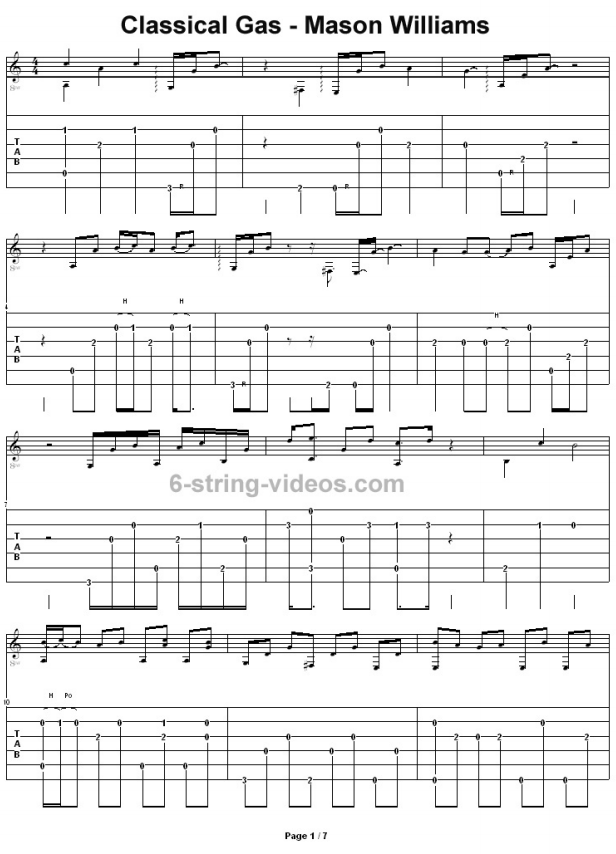 Classical Gas | Guitar sheet music, Sheet music, Guitar tabs