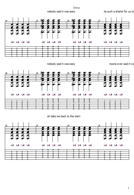 Coldplay "The Scientist" Guitar Tab in C# Minor - Download