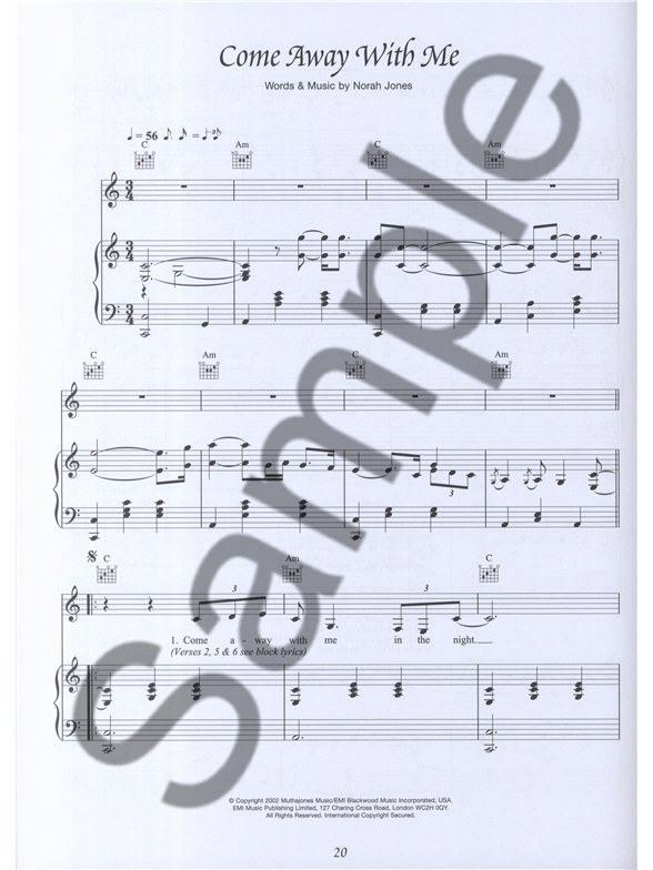 Buy "Come Away With Me" Sheet Music by Norah Jones for