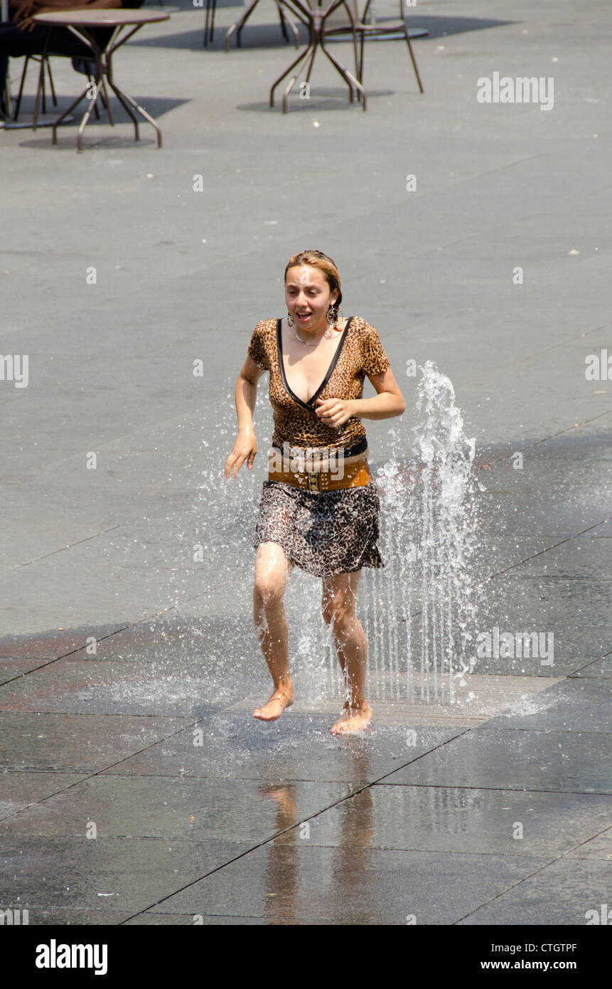 Canada, Ontario, Toronto. Woman cooling off from summer