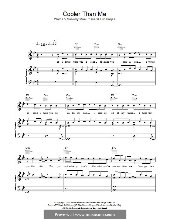 Cooler Than Me by E. Holljes, M. Posner - sheet music on