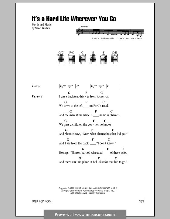 It's a Hard Life Wherever You Go by N. Griffith - sheet