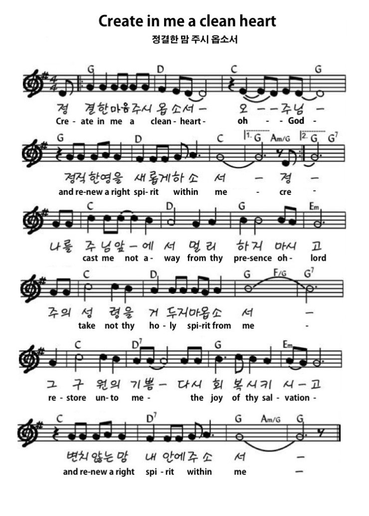 Create in me a clean heart 정결한 맘 주시옵소서 (GM) : 네이버 블로그
