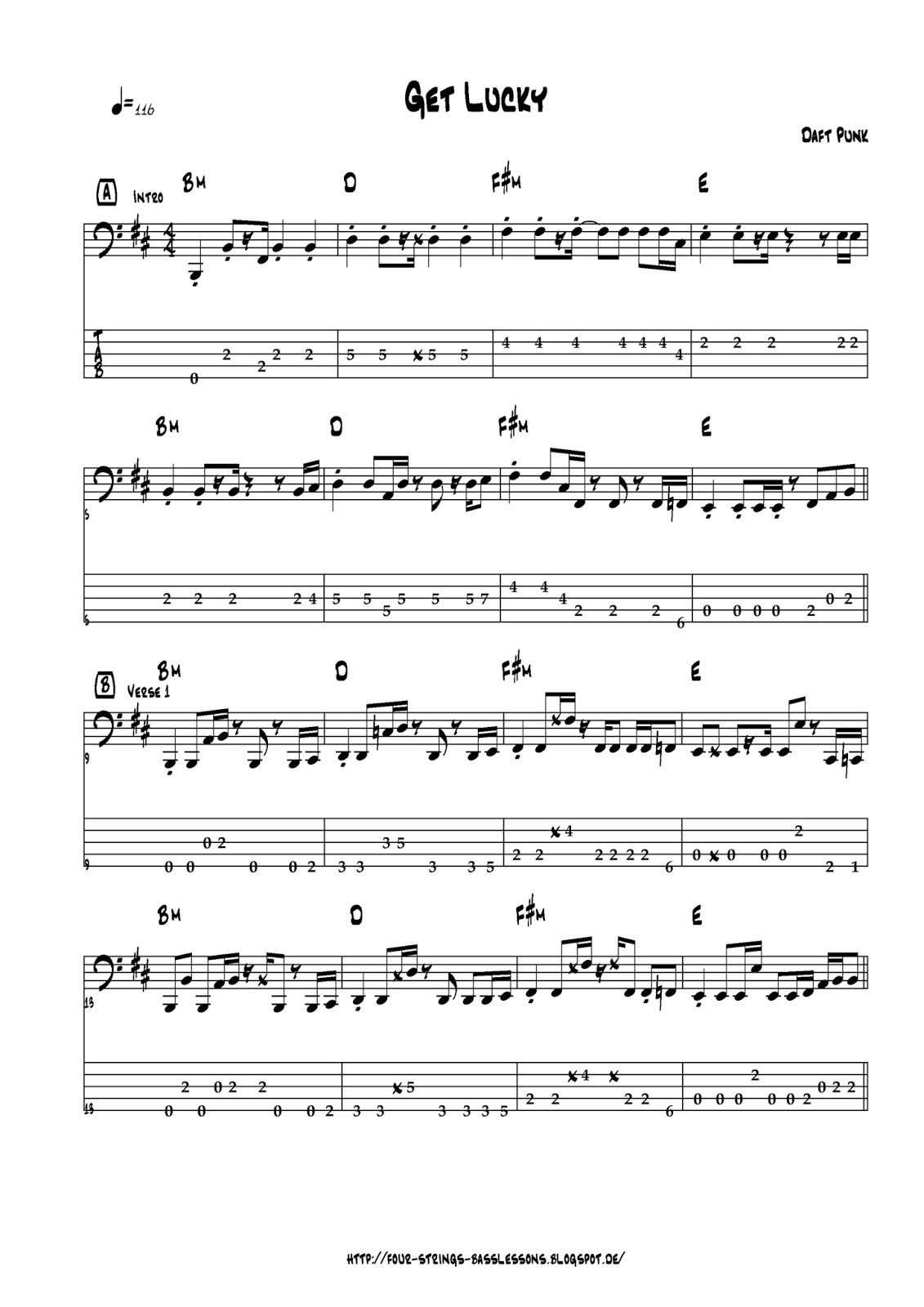 Daft Punk "Get Lucky" Bass Tab in F# Minor - Download