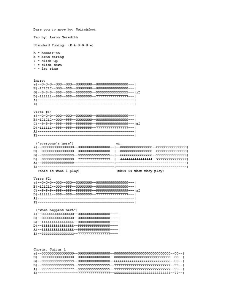 Switchfoot "Dare You To Move" Guitar Tab - Download & Print