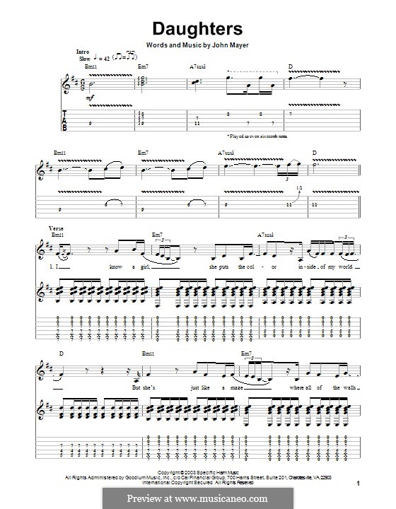 Daughters Guitar Tab and Chords - John Mayer Guitar World